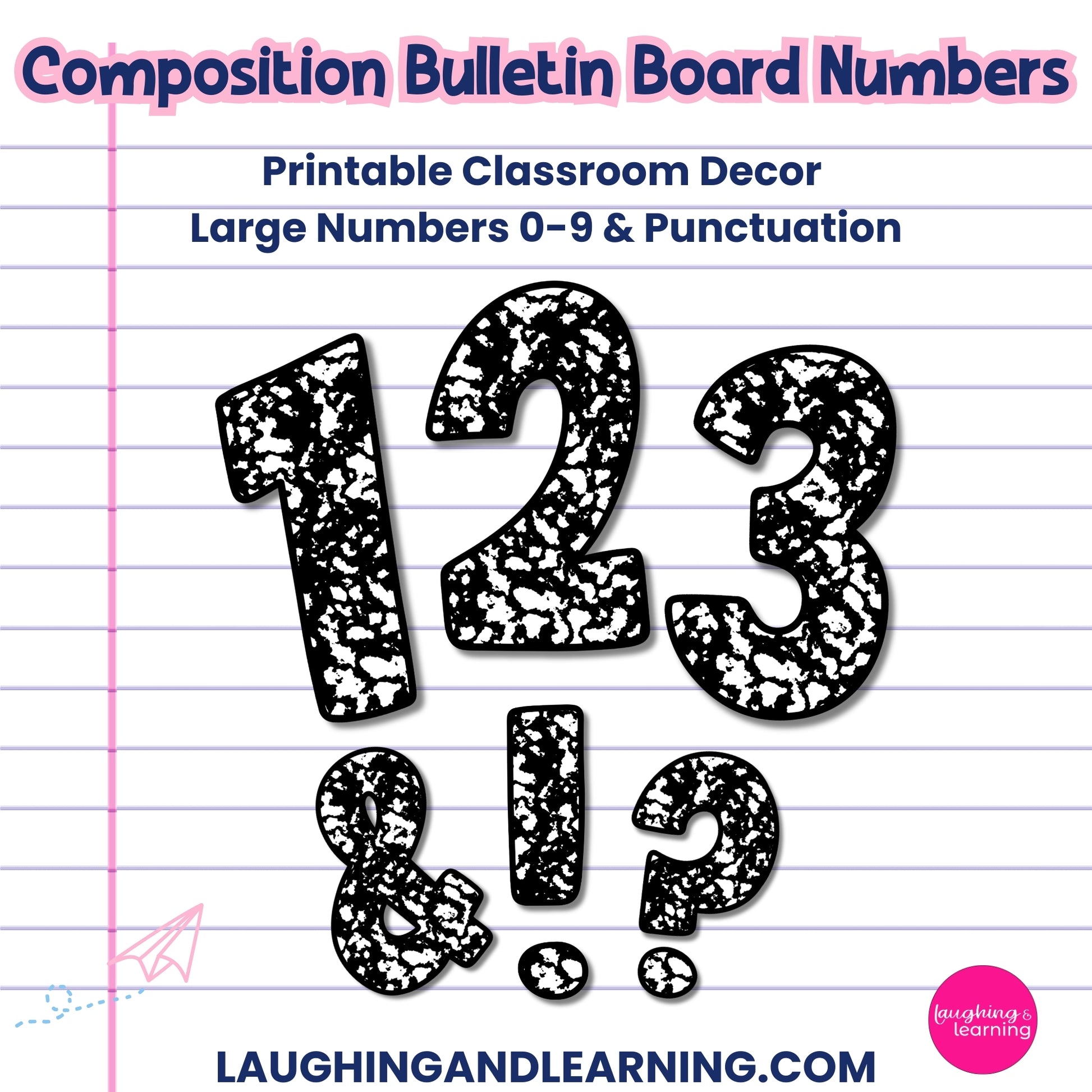 - 0-9 numbers and various punctuation marks in a fun, composition book themed design